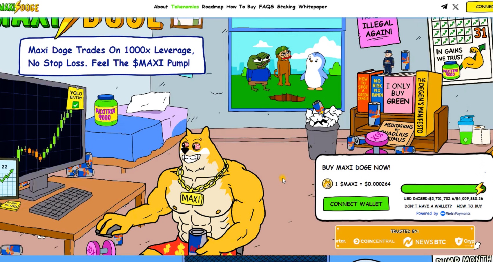 Le projet Maxi Doge (symbole : $MAXI) se présente comme une version extrême et assumée des mèmecoins. Il revendique l’héritage de Dogecoin tout en misant sur une communauté prête à prendre des risques démesurés : levier 1000×, staking ambitieux, marketing agressif. D’emblée, le ton est donné : moins recherche d’utilité, plus mouvement, énergie, culture degenerate.